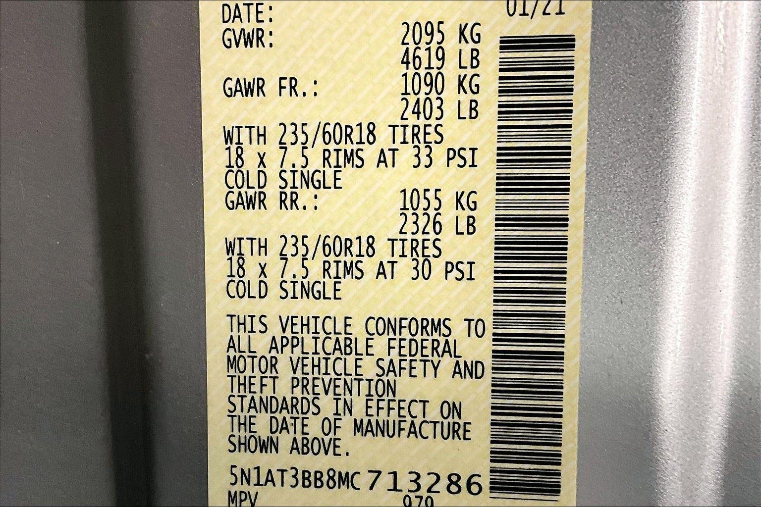 - Tires: 235/60R18 All Season