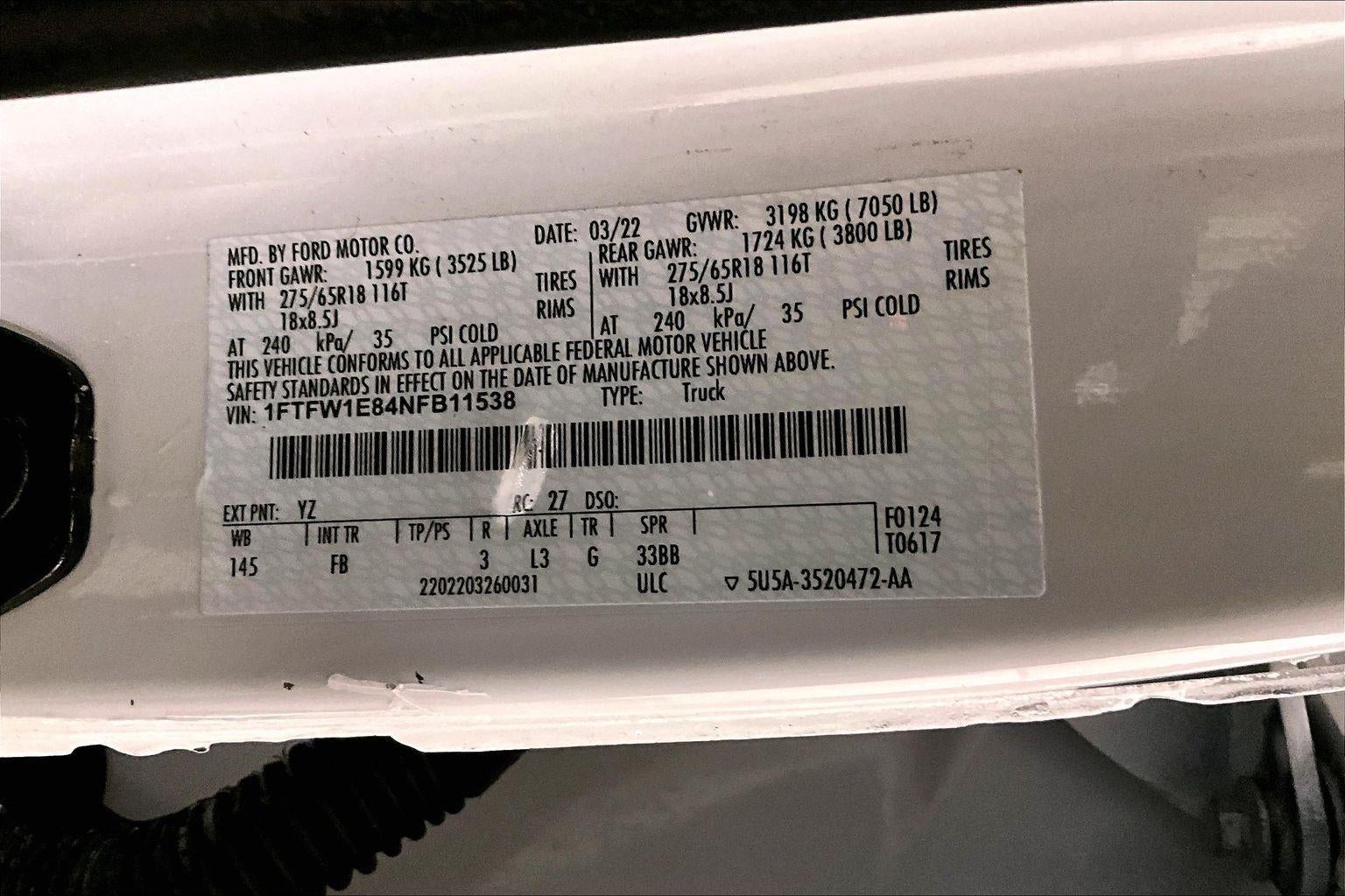 2022 Ford F-150 XLT with Oxford White exterior and Black interior. It has 32,830 miles and the stock number is PV21042Z.
